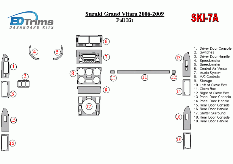 Suzuki Grand Vitara 2006 - 2009 Dash Trim Kit