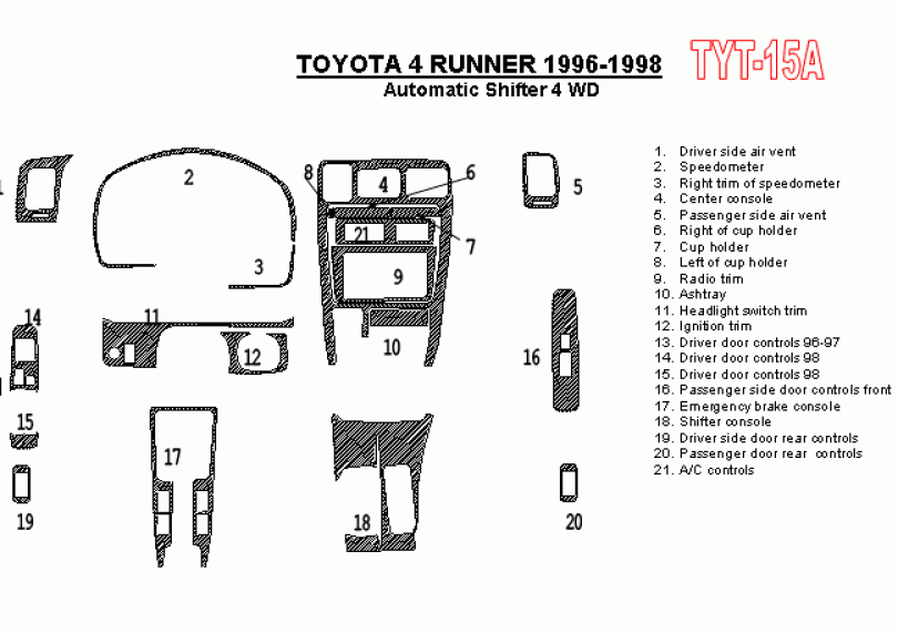 Toyota 4 Runner 1996 - 1998 Dash Trim Kit