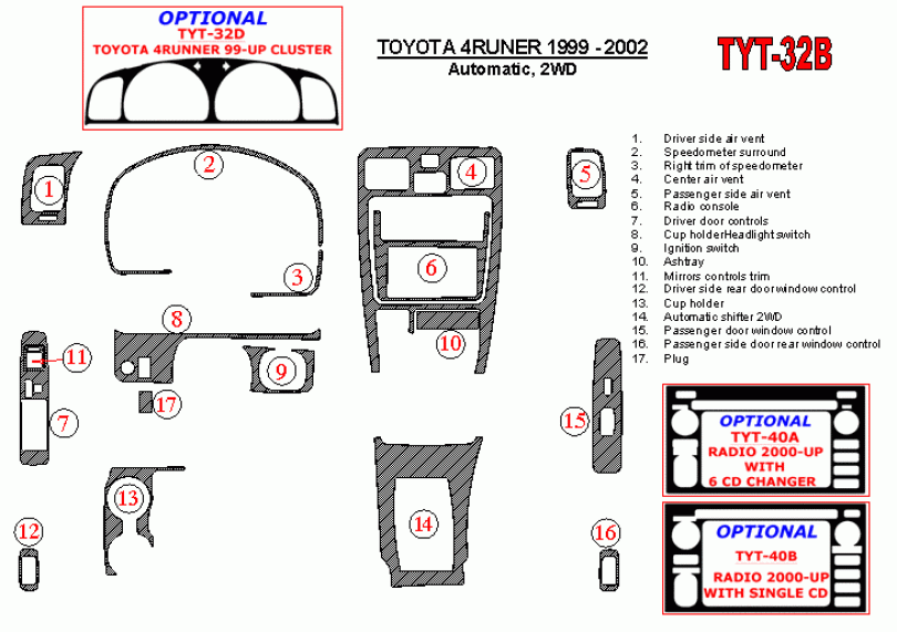 Toyota 4 Runner 1999 - 2002 Dash Trim Kit
