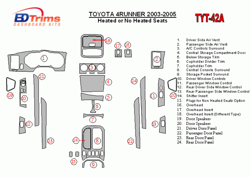 Toyota 4 Runner 2003 - 2005 Dash Trim Kit