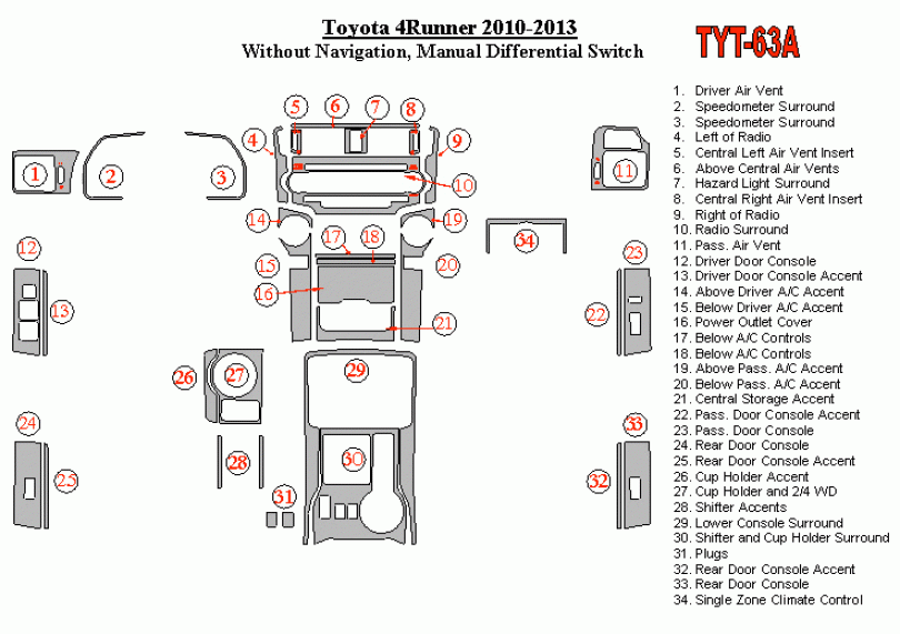 Toyota 4 Runner 2010 - 2013 Dash Trim Kit