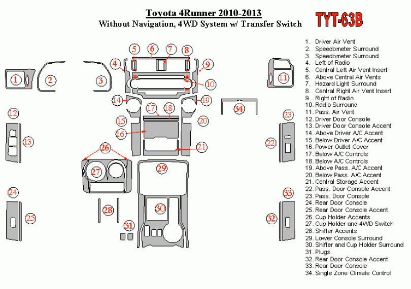 Toyota 4 Runner 2010 - 2013 Dash Trim Kit