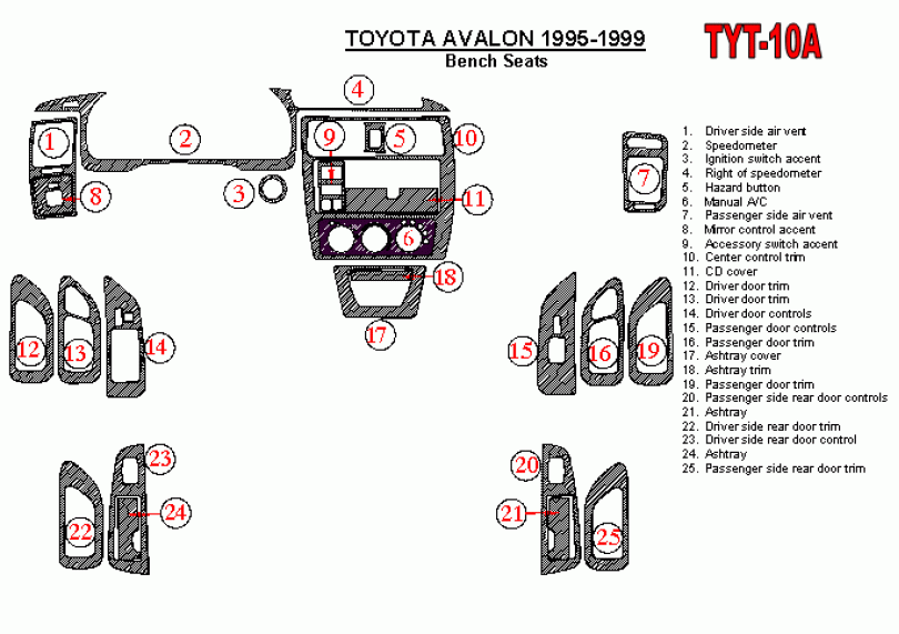 Toyota Avalon 1995 - 1999 Dash Trim Kit