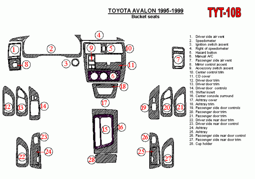 Toyota Avalon 1995 - 1999 Dash Trim Kit