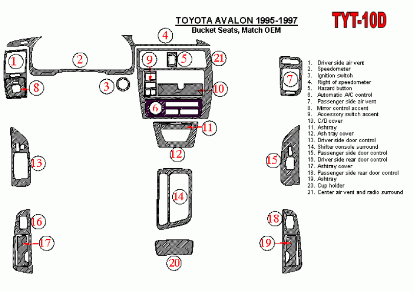 Toyota Avalon 1995 - 1999 Dash Trim Kit