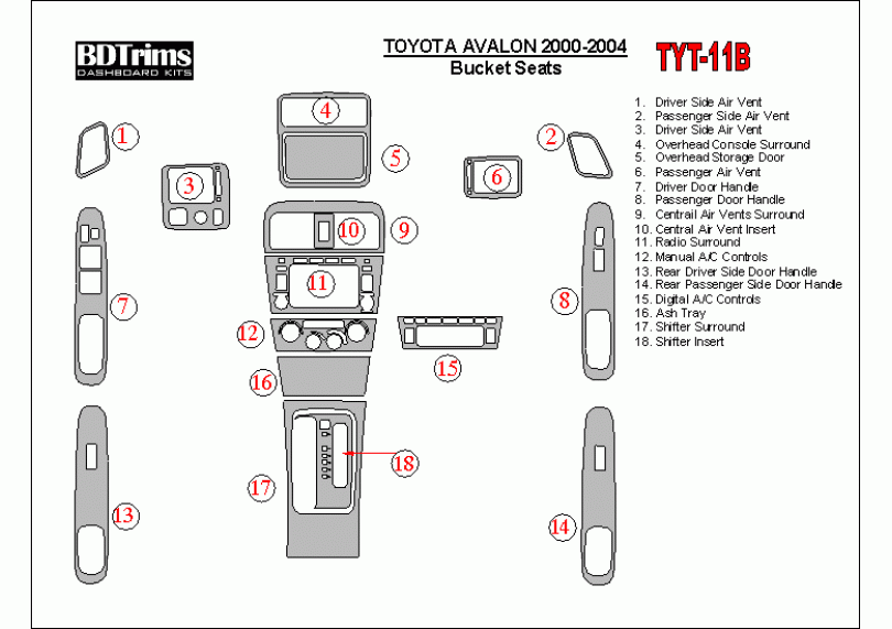 Toyota Avalon 2000 - 2004 Dash Trim Kit
