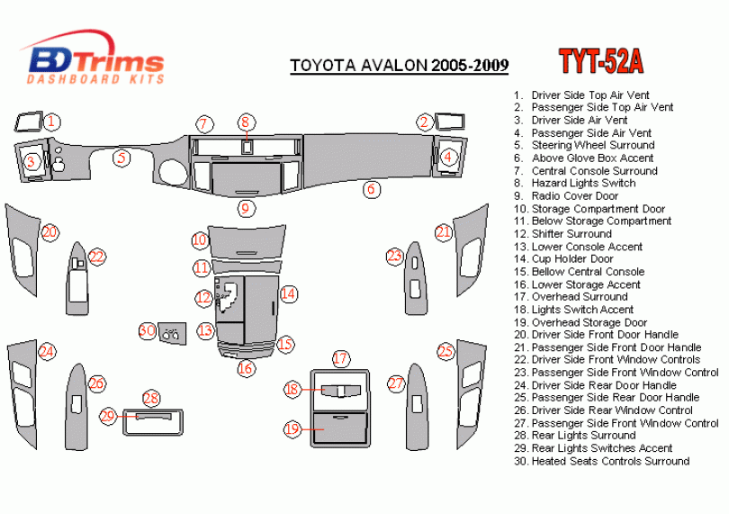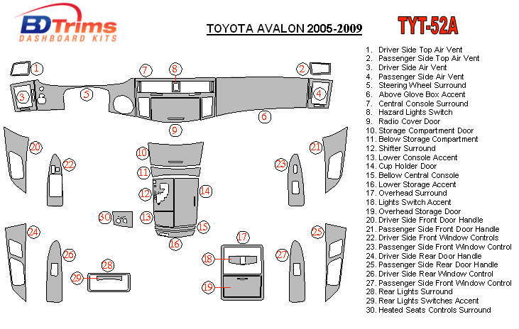 Toyota Avalon 2005 - 2009 Dash Trim Kit