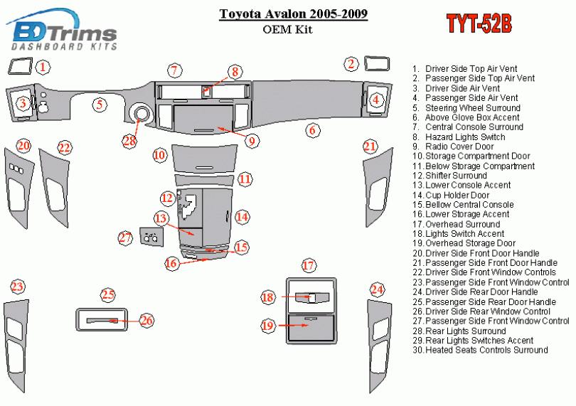 Toyota Avalon 2005 - 2009 Dash Trim Kit