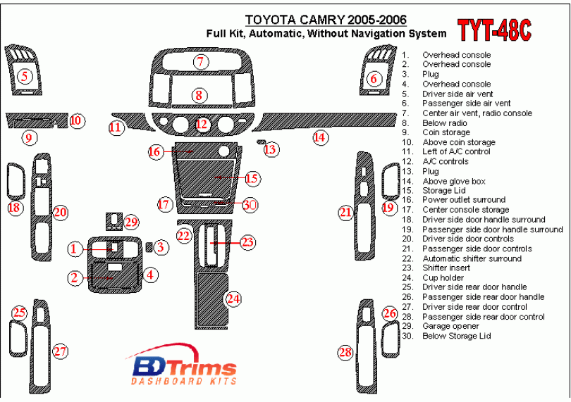 Toyota Camry 2005 - 2006 Dash Trim Kit