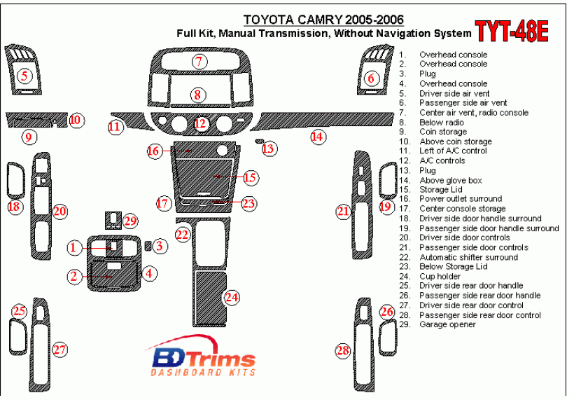 Toyota Camry 2005 - 2006 Dash Trim Kit