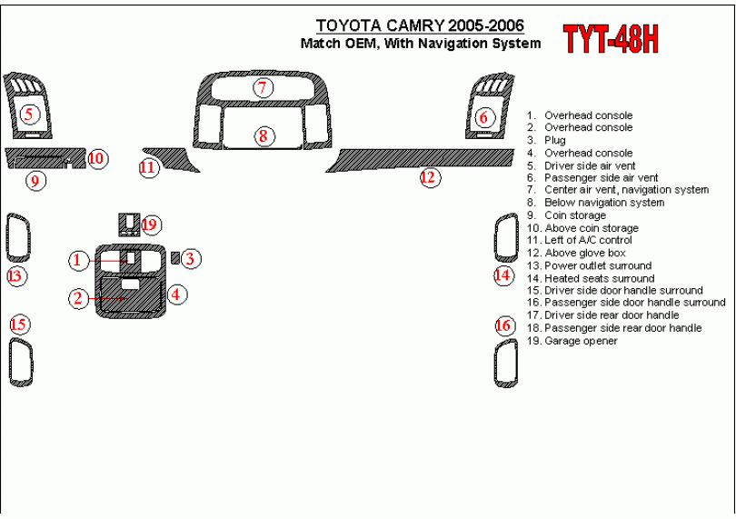 Toyota Camry 2005 - 2006 Dash Trim Kit