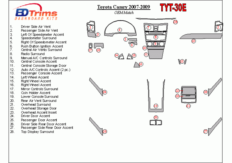 Toyota Camry 2007 - 2009 Dash Trim Kit