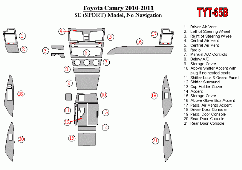 Toyota Camry 2010 - 2011 Dash Trim Kit