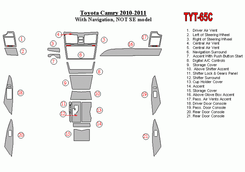 Toyota Camry 2010 - 2011 Dash Trim Kit