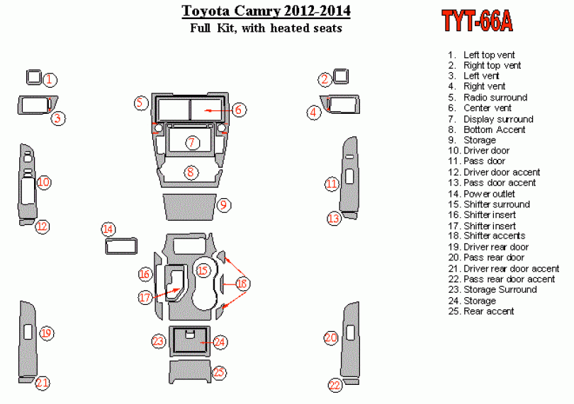 Toyota Camry 2012 - 2012 Dash Trim Kit
