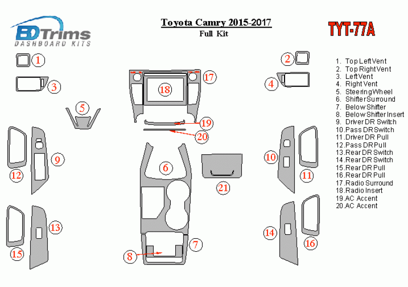Toyota Camry 2015 - 2017 Dash Trim Kit