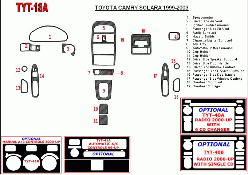 Toyota Camry Solara 1999 - 2003 Dash Trim Kit