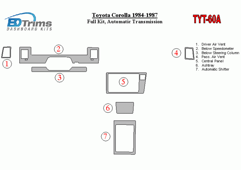 Toyota Corolla 1984 - 1987 Dash Trim Kit