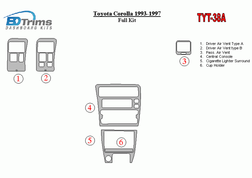 Toyota Corolla 1993 - 1997 Dash Trim Kit