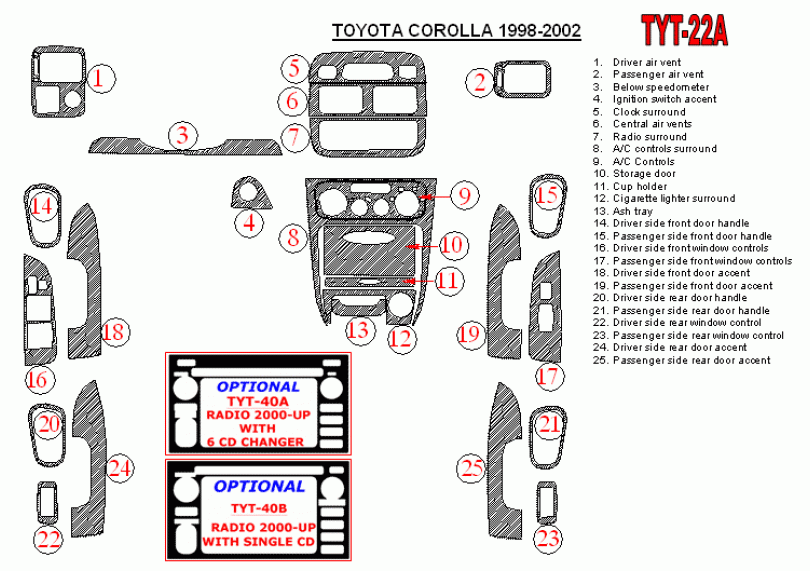 Toyota Corolla 1998 - 2002 Dash Trim Kit