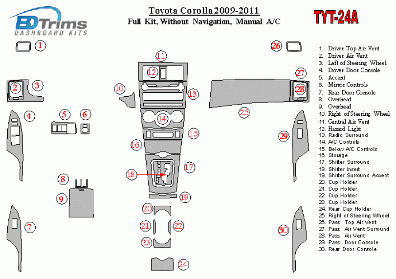 Toyota Corolla 2009 - 2011 Dash Trim Kit