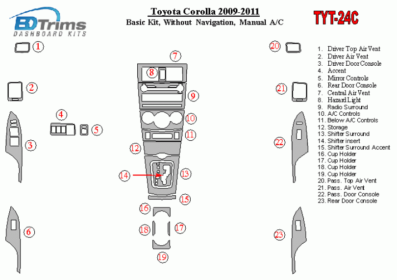 Toyota Corolla 2009 - 2011 Dash Trim Kit