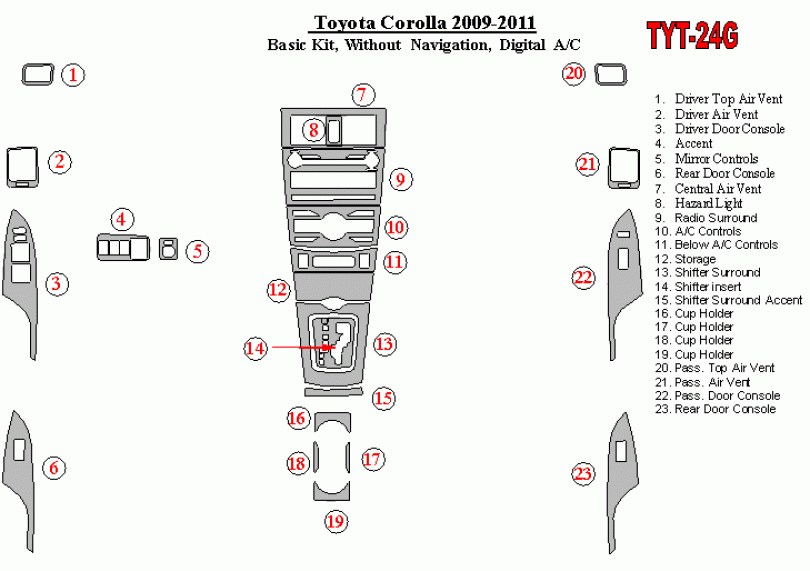 Toyota Corolla 2009 - 2011 Dash Trim Kit