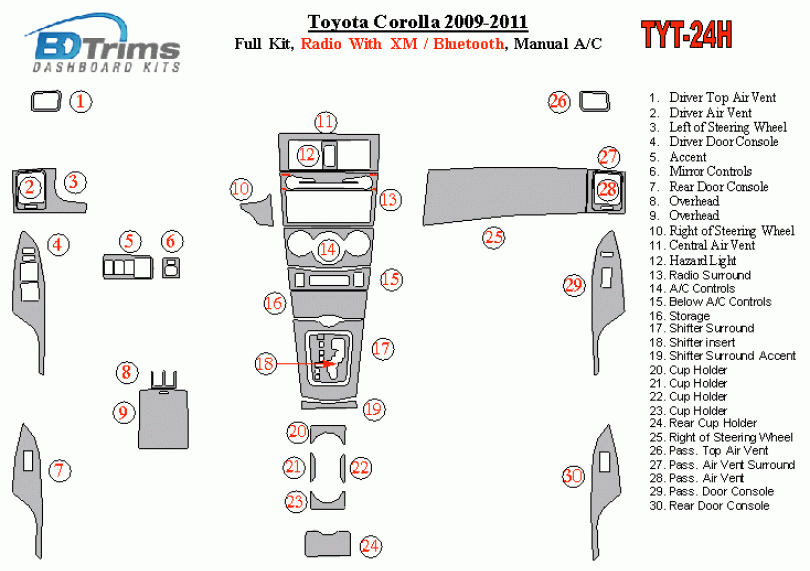 Toyota Corolla 2009 - 2011 Dash Trim Kit