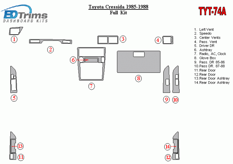 Toyota Cressida 1985 - 1988 Dash Trim Kit