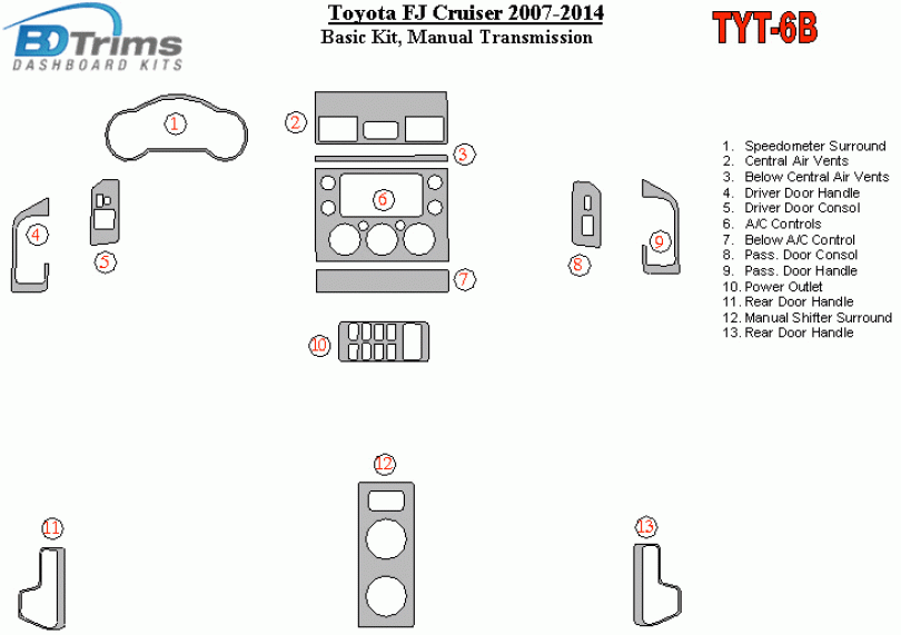 Toyota FJ Cruiser 2007 - 2014 Dash Trim Kit