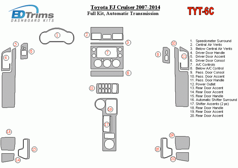 Toyota FJ Cruiser 2007 - 2014 Dash Trim Kit