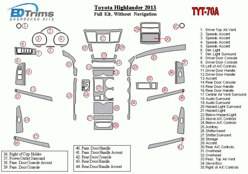 Toyota Highlander 2013 - 2013 Dash Trim Kit