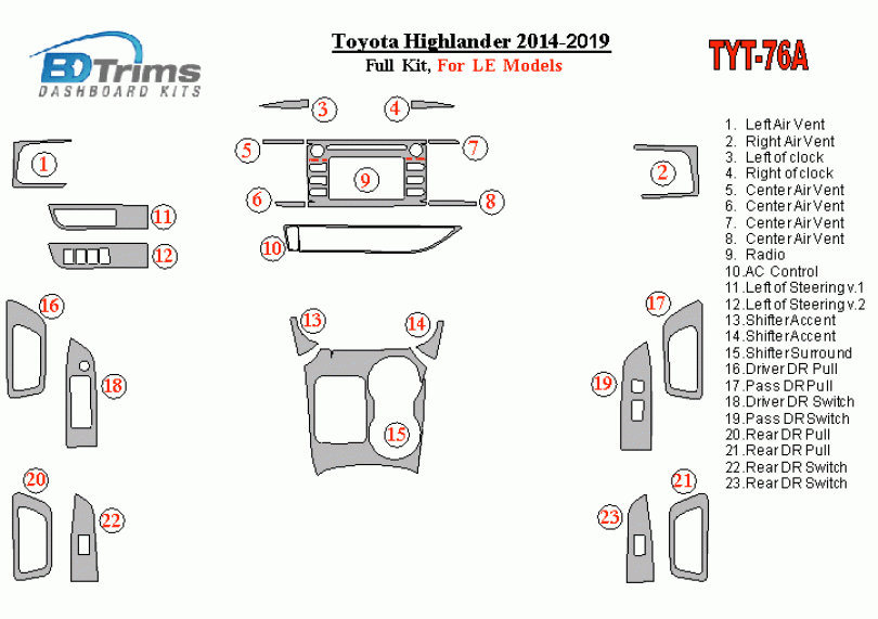 Toyota Highlander 2014 - 2019 Dash Trim Kit