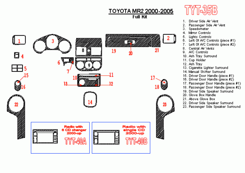 Toyota MR-2 2000 - 2005 Dash Trim Kit