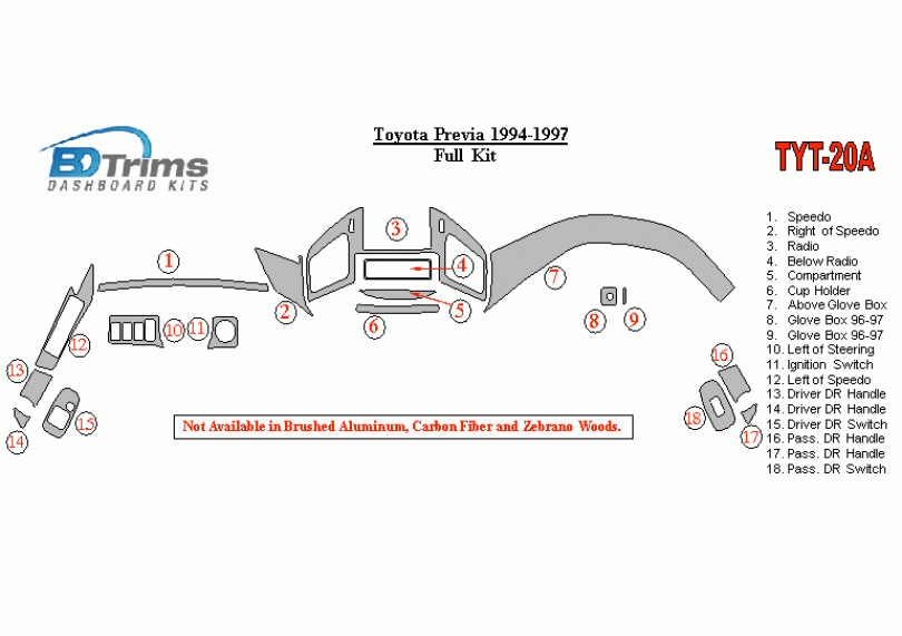 Toyota Previa 1994 - 1997 Dash Trim Kit