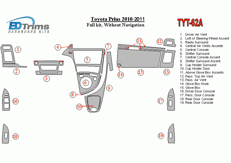 Toyota Prius 2010 - 2011 Dash Trim Kit