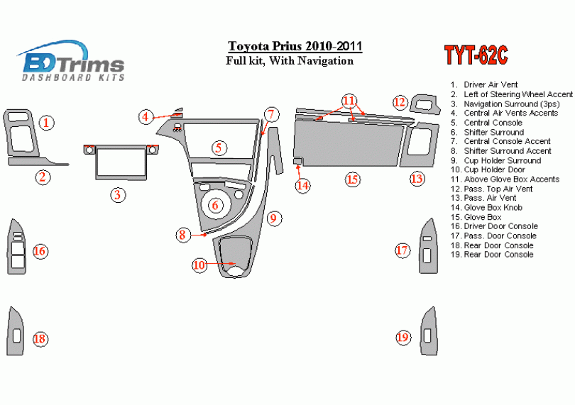 Toyota Prius 2010 - 2011 Dash Trim Kit