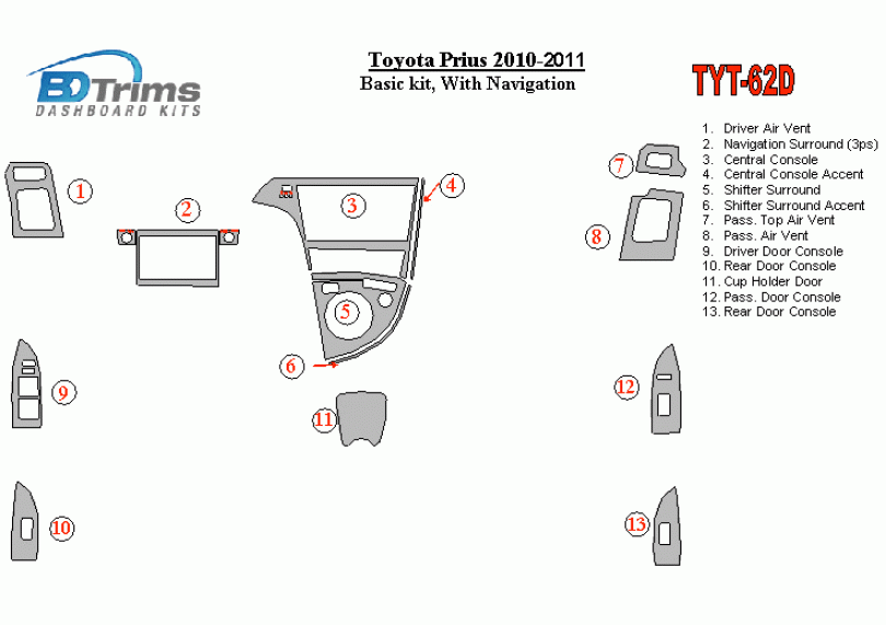 Toyota Prius 2010 - 2011 Dash Trim Kit
