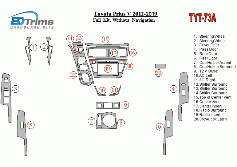 Toyota Prius V 2012 - 2019 Dash Trim Kit