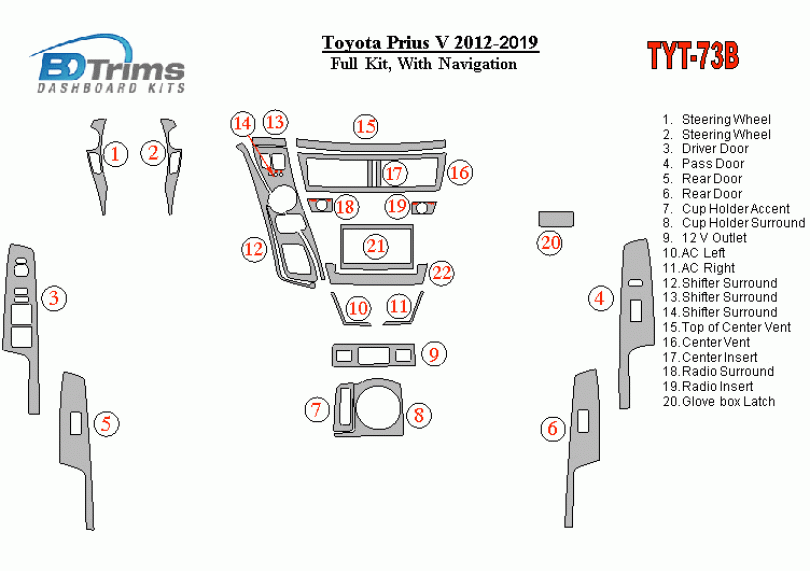 Toyota Prius V 2012 - 2019 Dash Trim Kit