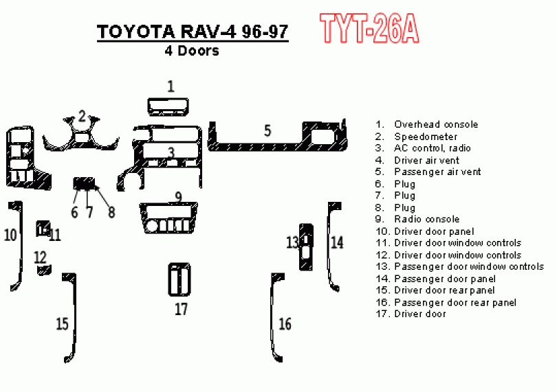 Toyota RAV-4 1996 - 1997 Dash Trim Kit