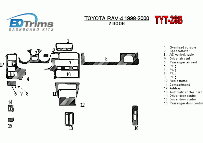 Toyota RAV-4 1998 - 2000 Dash Trim Kit
