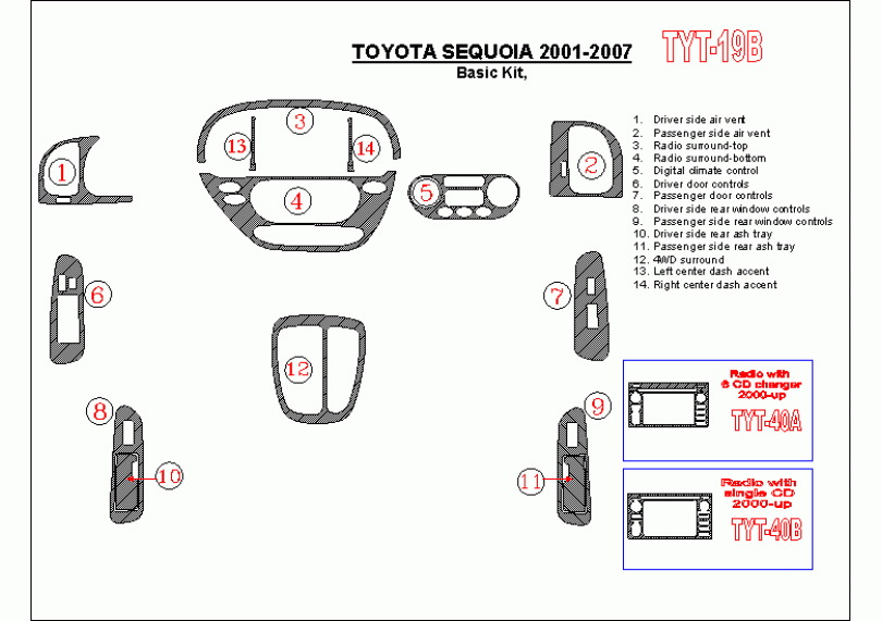 Toyota Sequoia 2001 - 2007 Dash Trim Kit