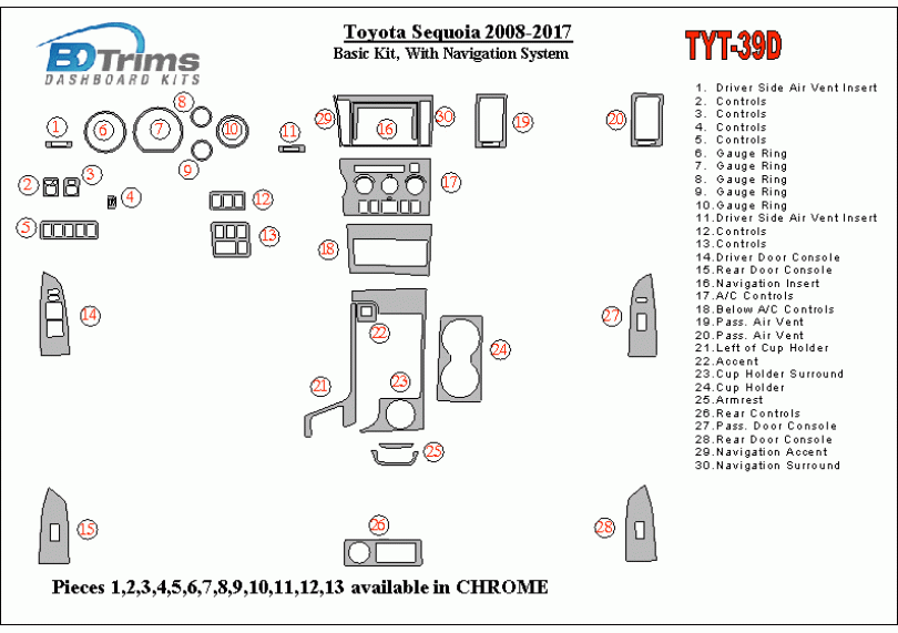 Toyota Sequoia 2008 - 2017 Dash Trim Kit