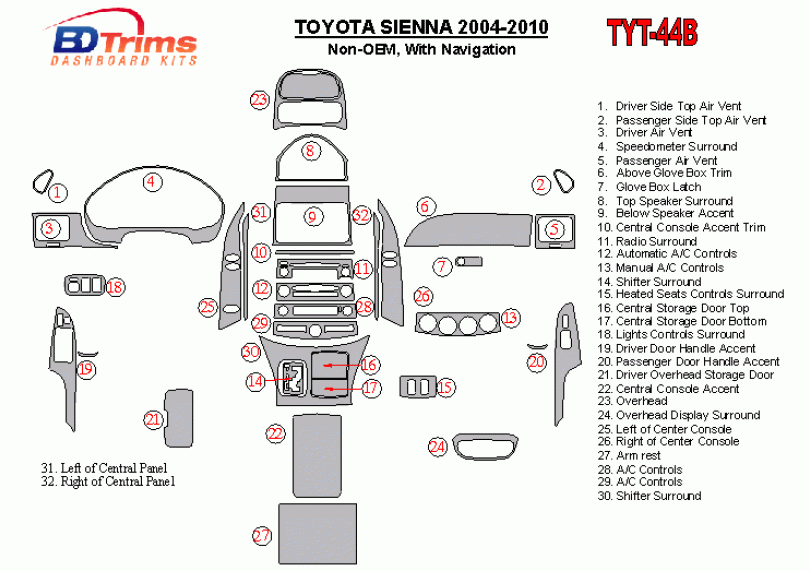 Toyota Sienna 2003 - 2010 Dash Trim Kit