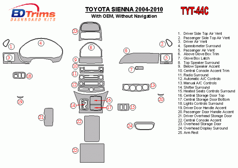 Toyota Sienna 2004 - 2010 Dash Trim Kit