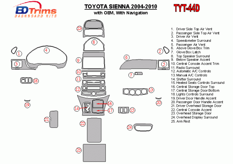 Toyota Sienna 2004 - 2010 Dash Trim Kit