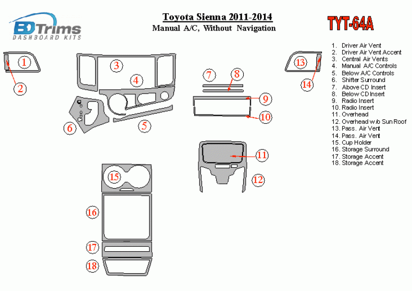 Toyota Sienna 2011 - 2014 Dash Trim Kit