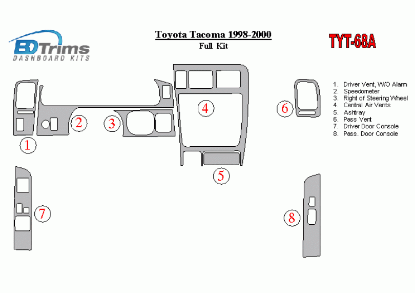 Toyota Tacoma 1998 - 2000 Dash Trim Kit