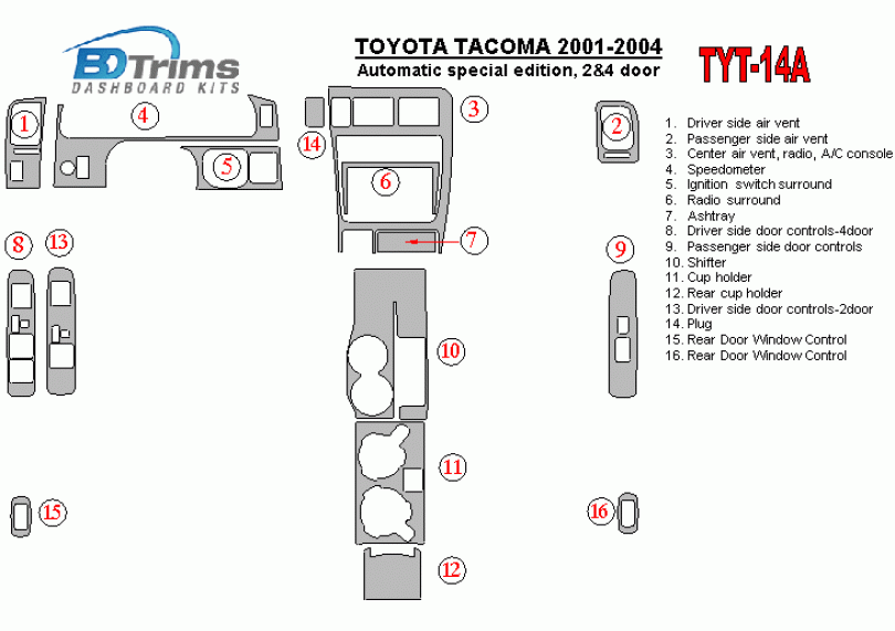 Toyota Tacoma 2001 - 2004 Dash Trim Kit
